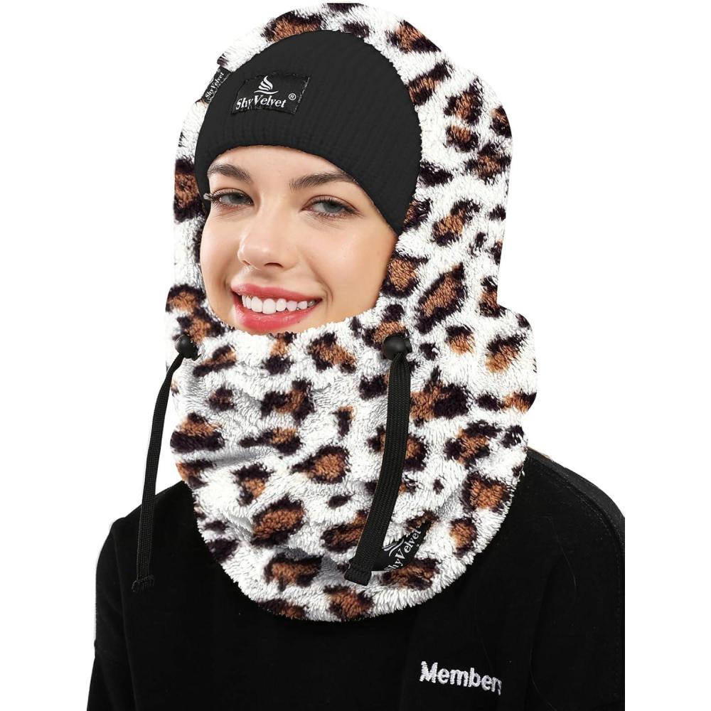 imageShy Velvet Balaclava WindResistant Winter Face MaskFleece Ski Mask for Men and WomenWarm Face Cover Hat Cap ScarfWhite Leopard