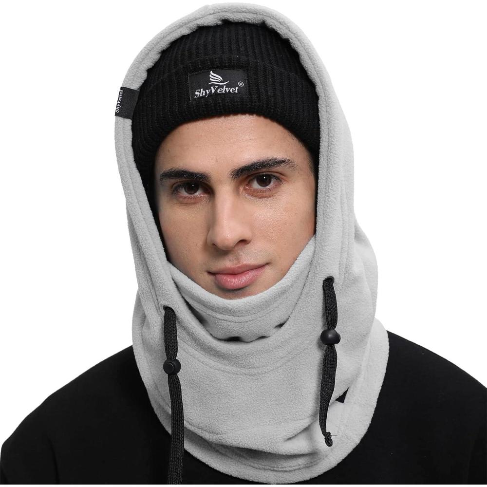 Shy Velvet Cold Weather Fleece Balaclava Ski Mask,Balaclava Wind-Resistant Winter Face Mask for Men and Women(Grey)