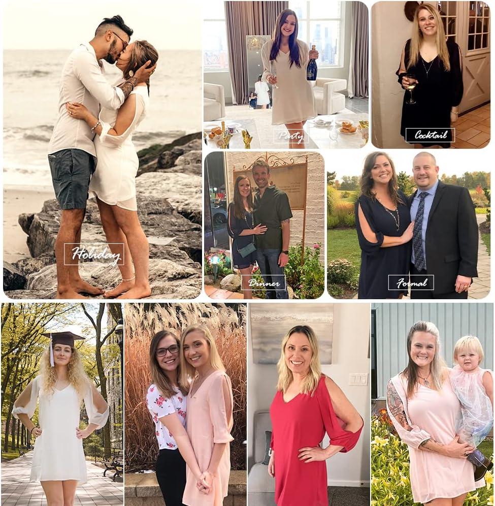 imageShy Velvet Womens Casual 34 Sleeve V Neck Shift Dress Chiffon Short Party DressWhite