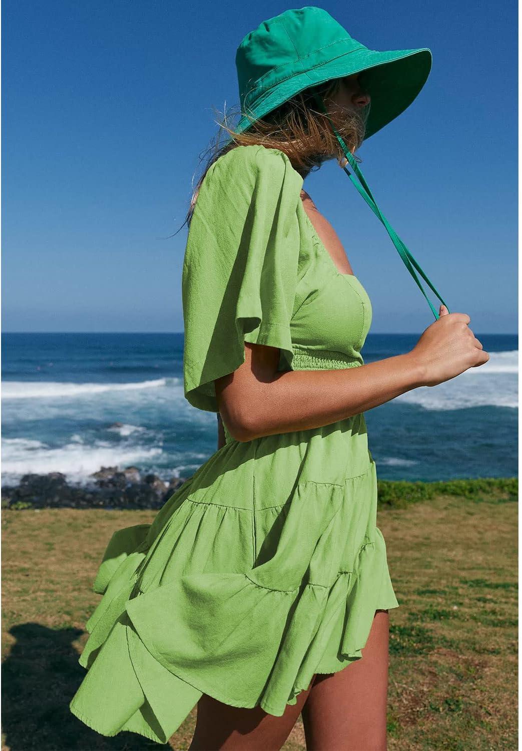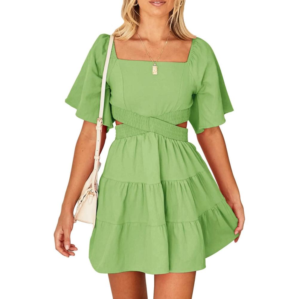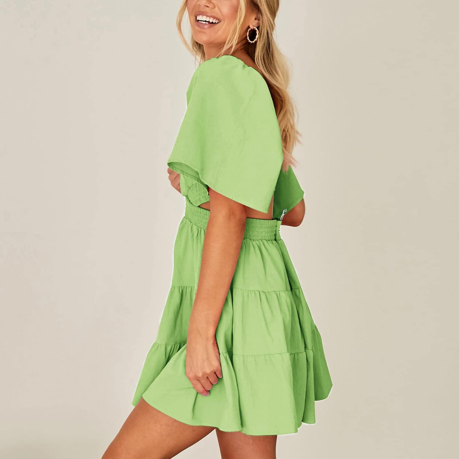 Shy Velvet Women’s Summer Dress Square Neck Short Sleeves Crossover Waist Casual Party Mini Dress(Green)