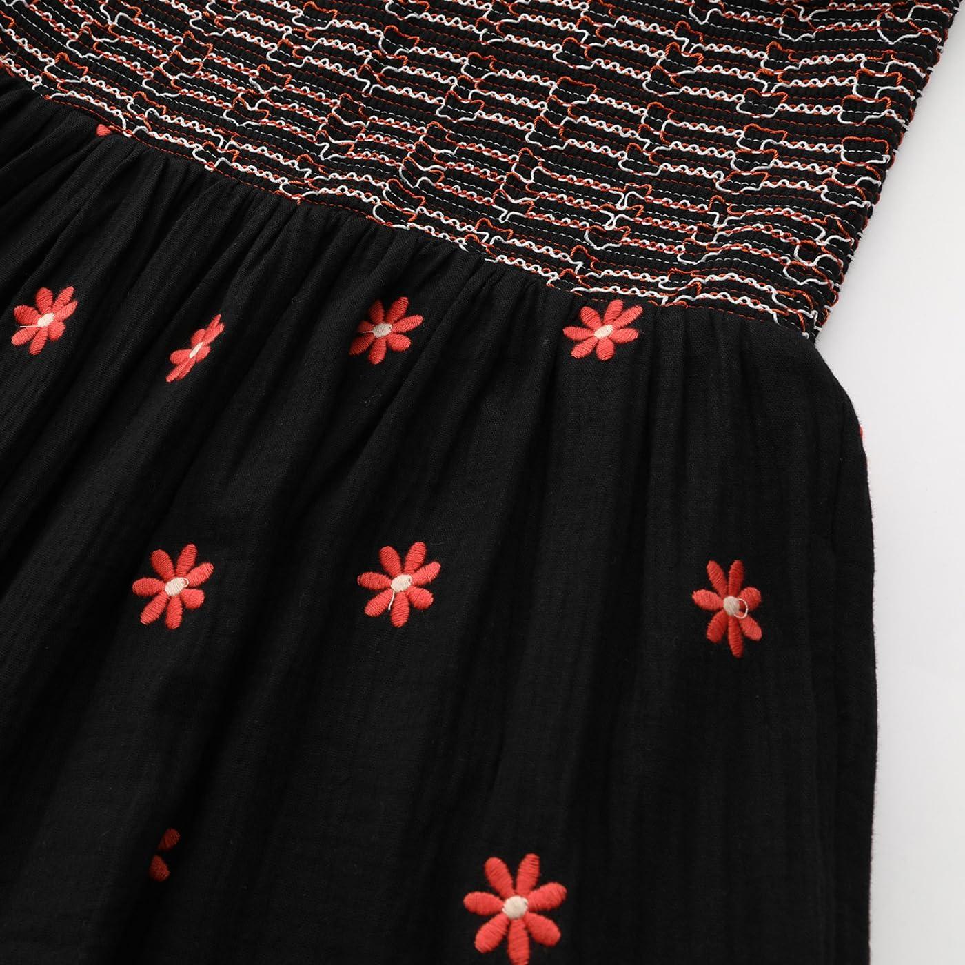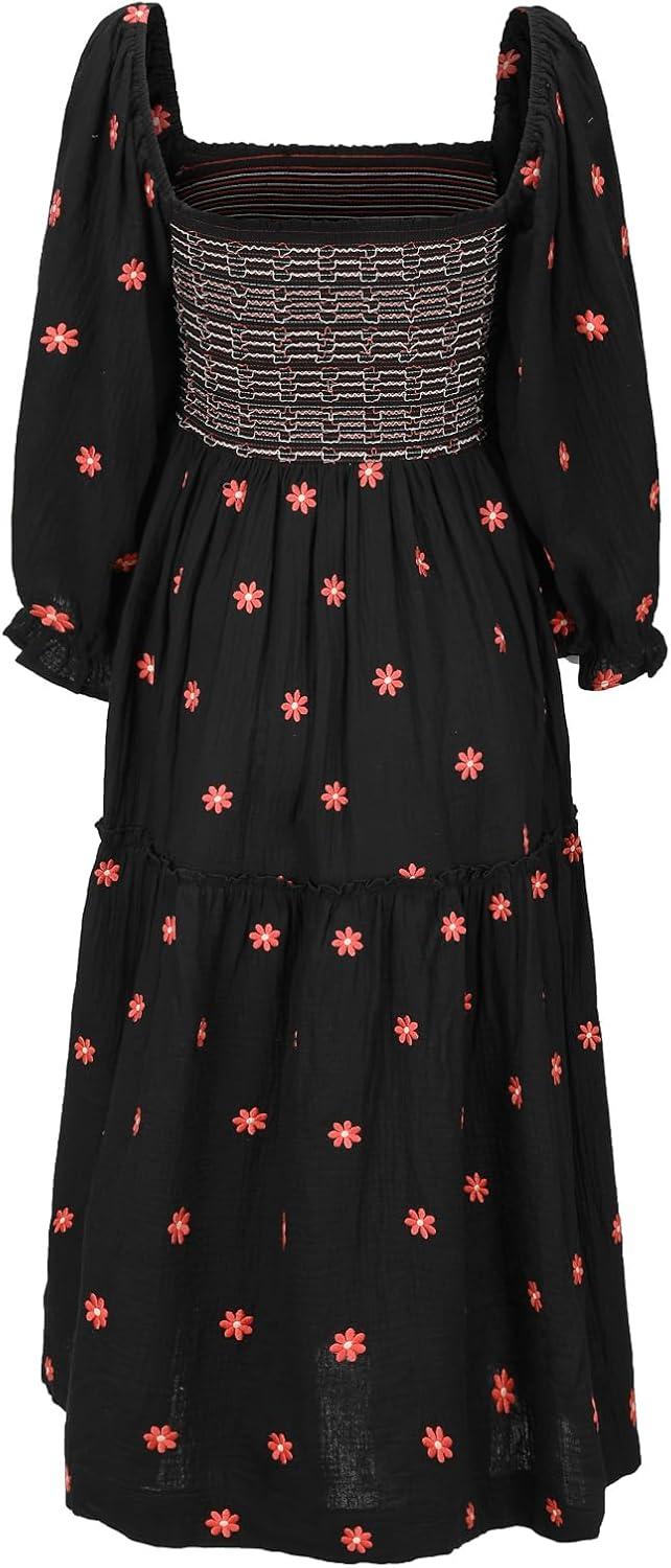 Shy Velvet Women’s Summer Dresses 2024 Maxi Dress Long Sleeve Square Neck Embroidered Maxi Dress(Black)