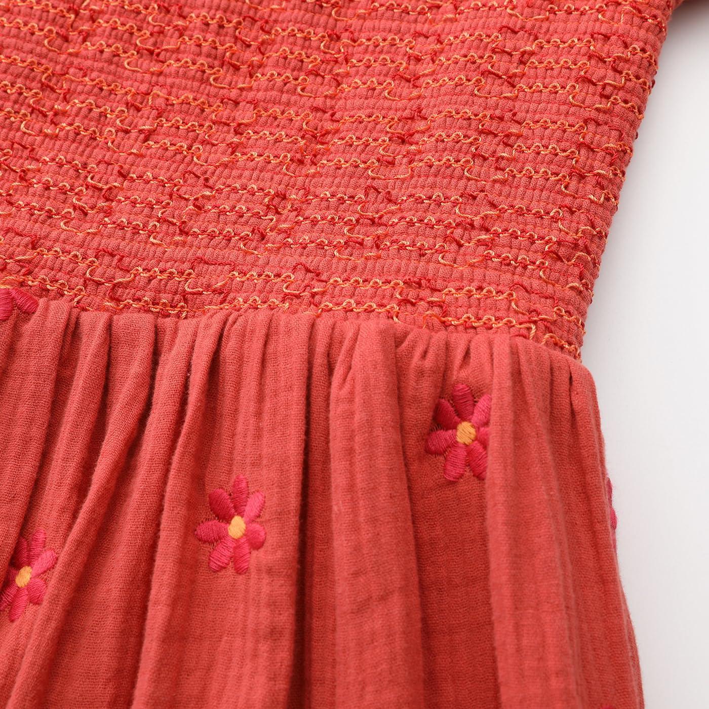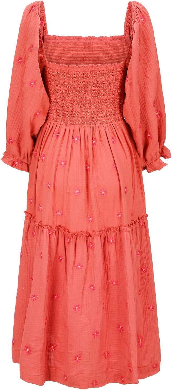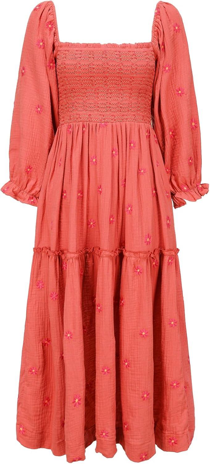 Shy Velvet Women’s Summer Dresses 2024 Maxi Dress Long Sleeve Square Neck Embroidered Maxi Dress(Brick Red)